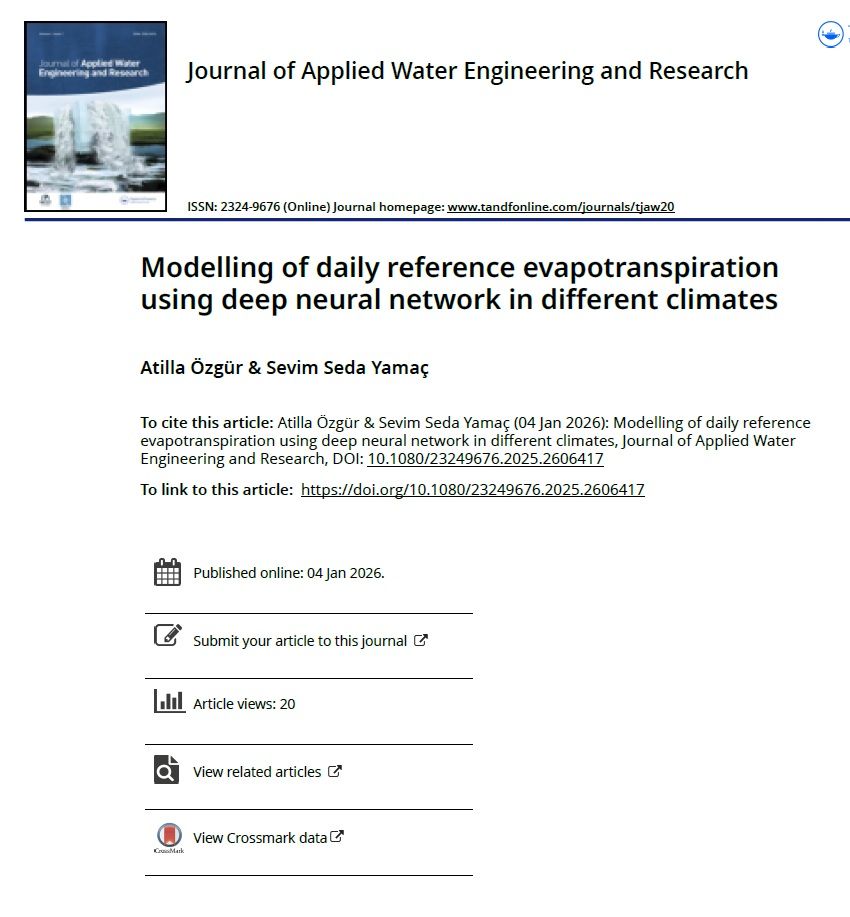 The article entitled “Modelling of daily reference evapotranspiration using deep neural network in different climates” is accepted for publication in Journal of Applied Water Engineering and Research.