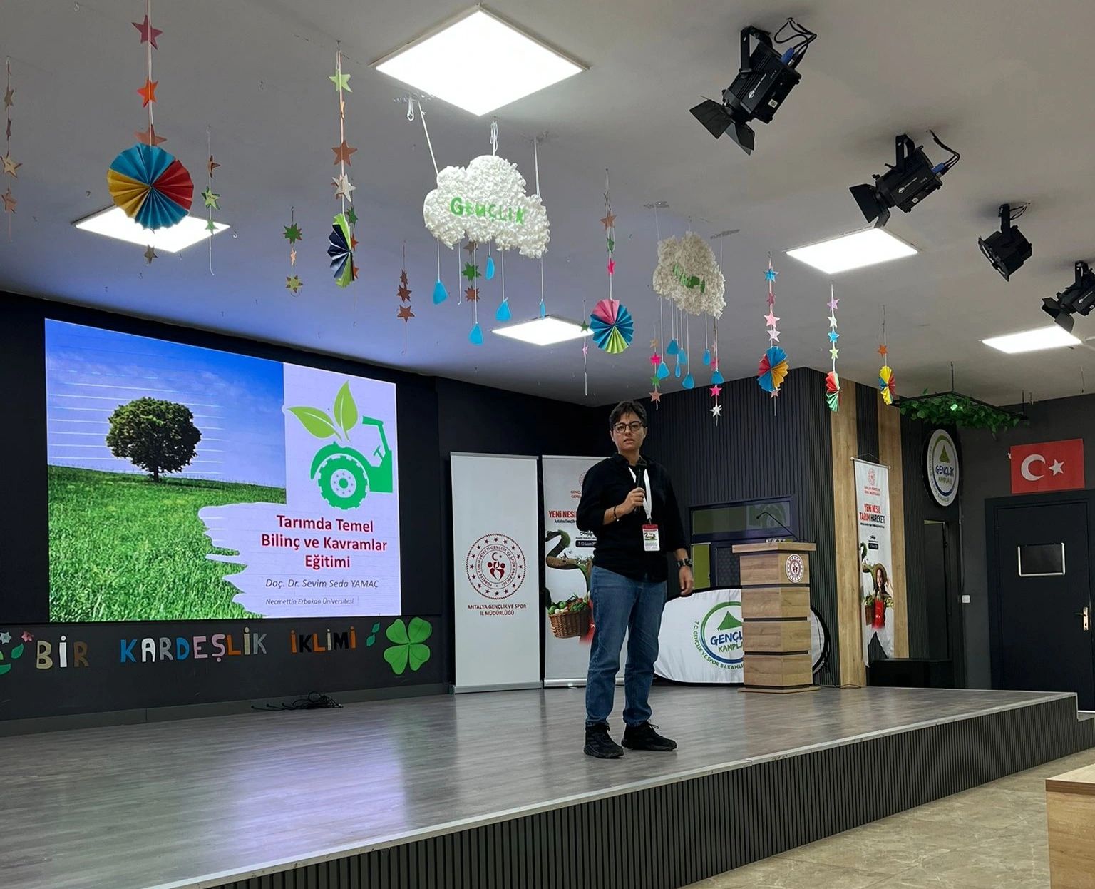 At the Next Generation Agriculture Movement Camp, which focused on the future of agriculture together with young people, Assoc. Prof. Dr. Sevim Seda Yamaç delivered a training session titled ‘Basic Awareness and Concepts in Agriculture’. The session provided high school students with an engaging and awareness-raising introduction to agriculture. Organized with the support of the General Directorate of Youth Services of the Ministry of Youth and Sports and in cooperation with UNICEF, the camp was held at the Antalya Aladdin Keykubad Camp Area.